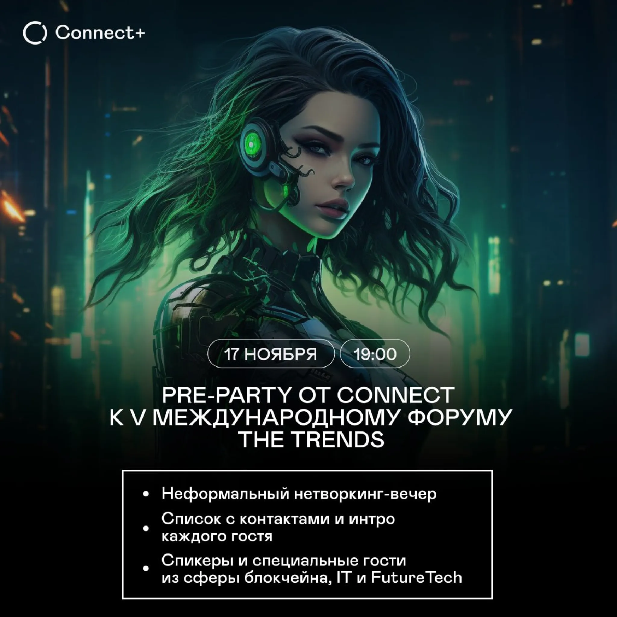 На одной площадке соберутся международные гости, лидеры технологических отраслей, представители AI, блокчейна, FutureTech и IT — чтобы обсудить будущее и завязать ценные знакомства в неформальной атмосфере